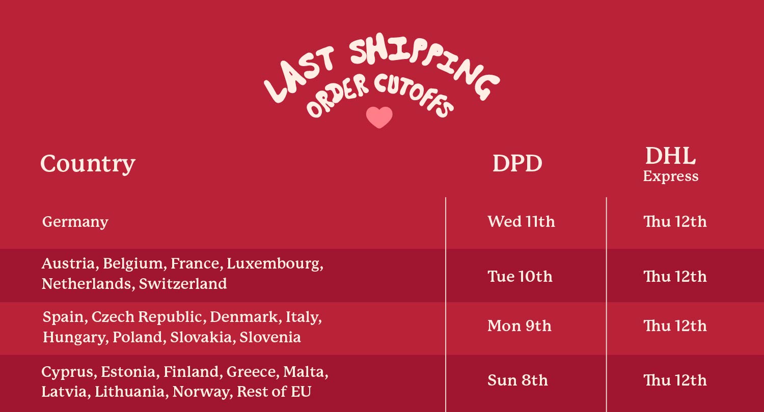 Check Valentine’s Collection Page for your country’s delivery cut-off