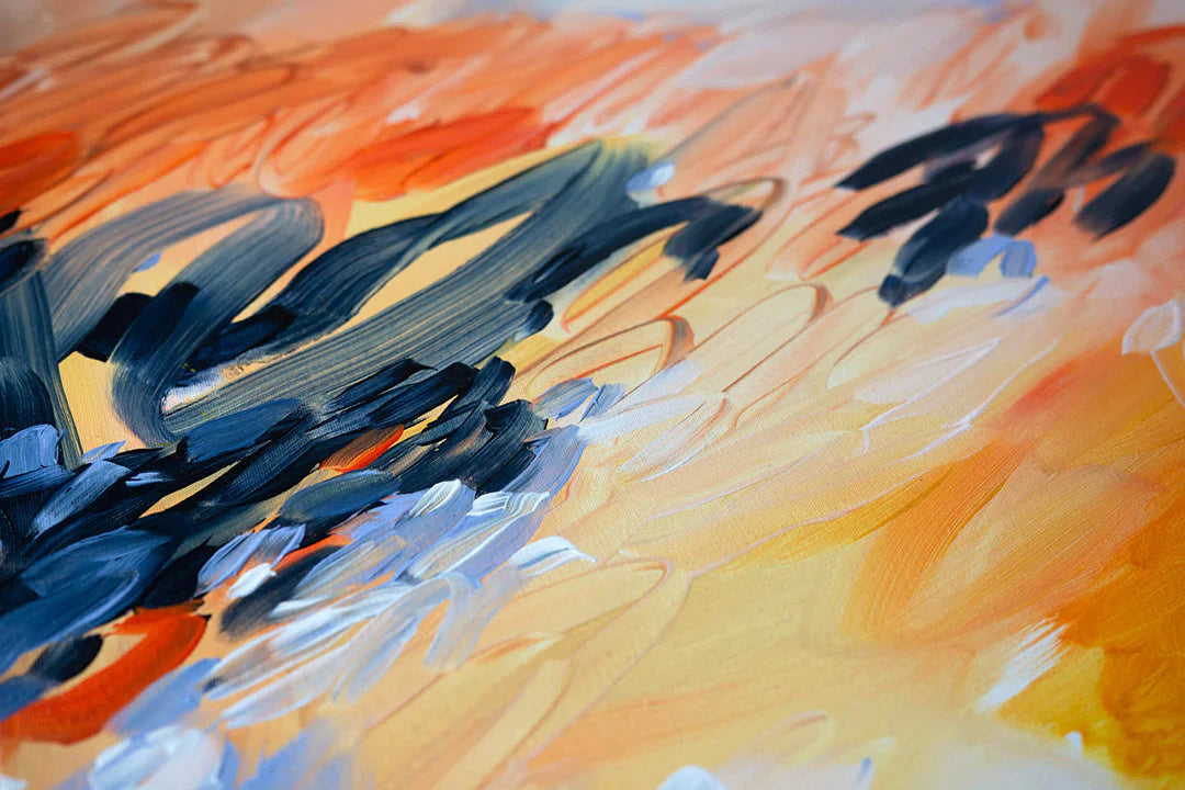 Meine Arbeit hingegen dreht sich nicht um ein bestimmtes Thema - eher um ein Gefühl. Ich schaue auch nach innen, denn Kunst ist ein Spiegelbild deiner Persönlichkeit. Für mich bin ich eine expressive, schnell denkende Person, was sich gut in