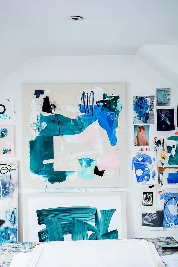 Vielleicht eine offensichtliche Antwort, aber ich liebe es, Galerien zu besuchen - hauptsächlich zeitgenössische Kunst. Natürlich lasse ich mich von anderen abstrakten Künstlern inspirieren, aber oft kommen die meisten meiner Ideen, Formen, Linienführungen und Farbanordnungen von figurativen Malern.