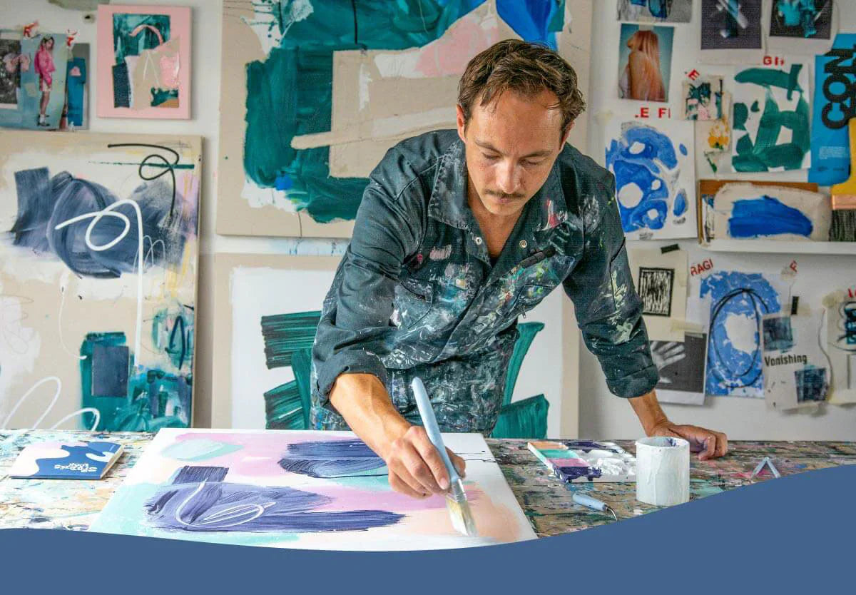Wir haben beide unsere vorgestellten abstrakten Künstler - Marcus und Emma - in ihren Atelier- und Galerieräumen besucht, um über Inspiration, musikalische Einflüsse, die Arbeit in ihren Heimstudios, die Bedeutung von Tageslicht... und das Wissen, wann man den Pinsel niederlegen sollte, zu sprechen!